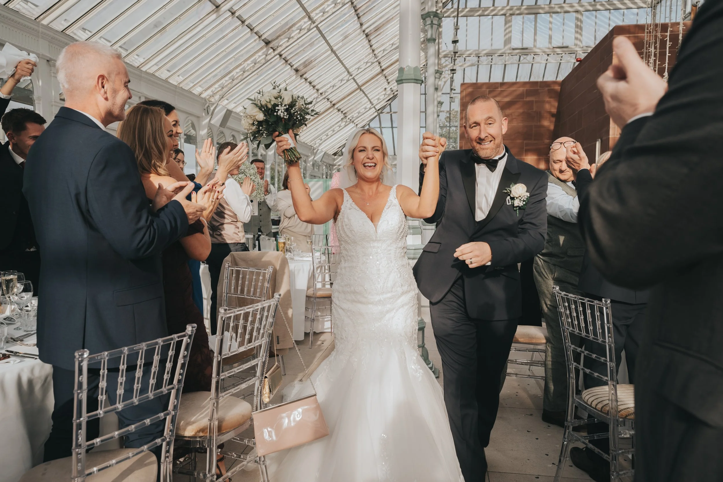 Yvonne and Andy were one of the very first couples to book with me, at my first wedding fayre almost 3 years ago - we love an organised bride! They chose the stunning Isla Gladstone conservatory, within Stanley Park, boasting beautiful gardens as well as the most incredible outdoor band stand, perfect for photos! They wanted their day to be sleek, elegant and filled with fun and laughter, so they came to the right place!