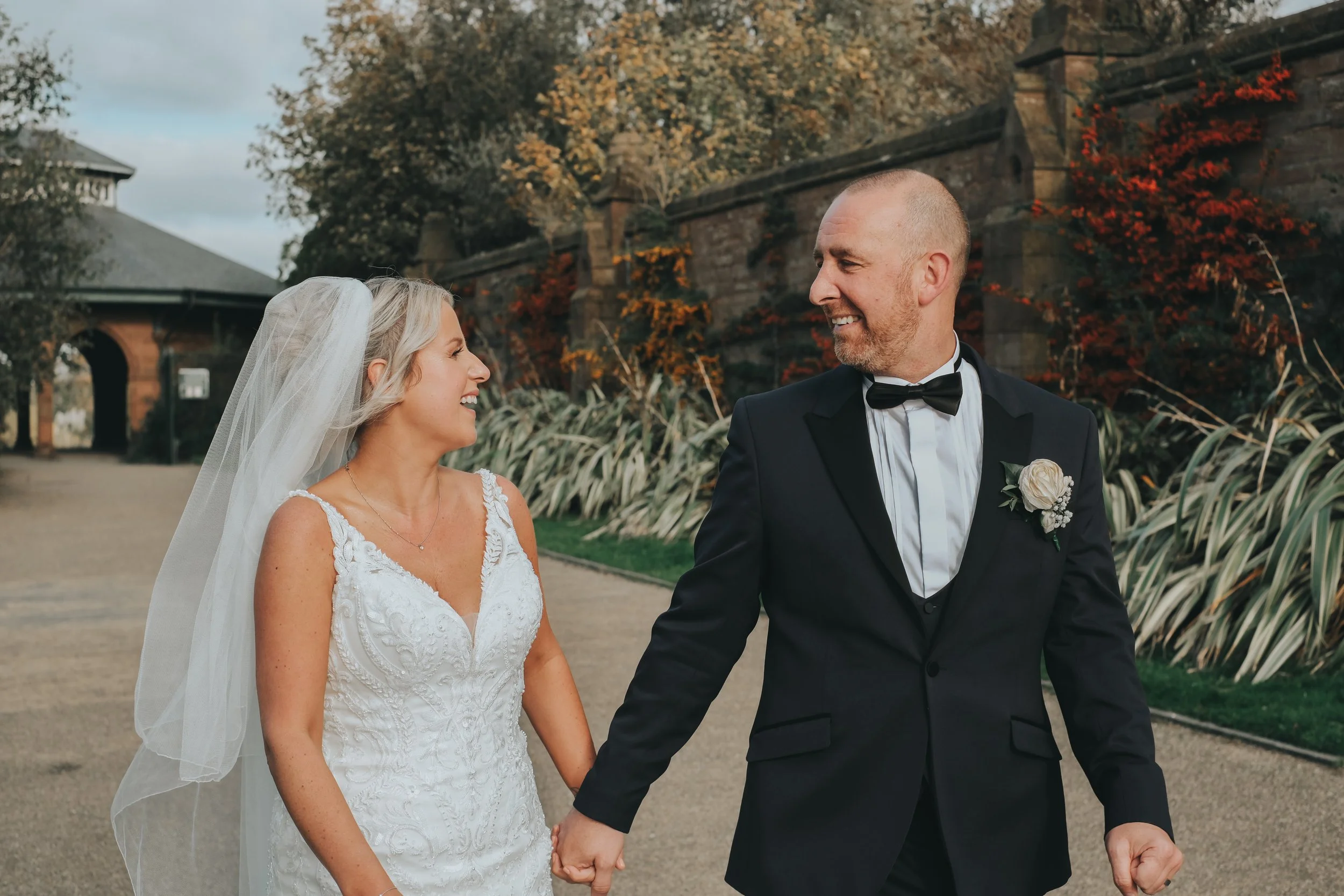 After the ceremony, we headed outside for those all-important family photos before taking the couple of for their individual shots. Lots of couples get nervous about this part and say things like ‘we hate having our photo taken’…and honestly…same! Thats why I position myself firmly behind the camera lens! But those 10-15 minutes where I whisk you off together is often the only part of the day that you actually have alone! Use this time to take a breather, just relax, catch up away from the madness! Most of my couples end up saying that this part was their favourite bit of the day! Yvonne and Andy were no different, and despite being an October afternoon, the sun shone for our couple photos around the grounds.